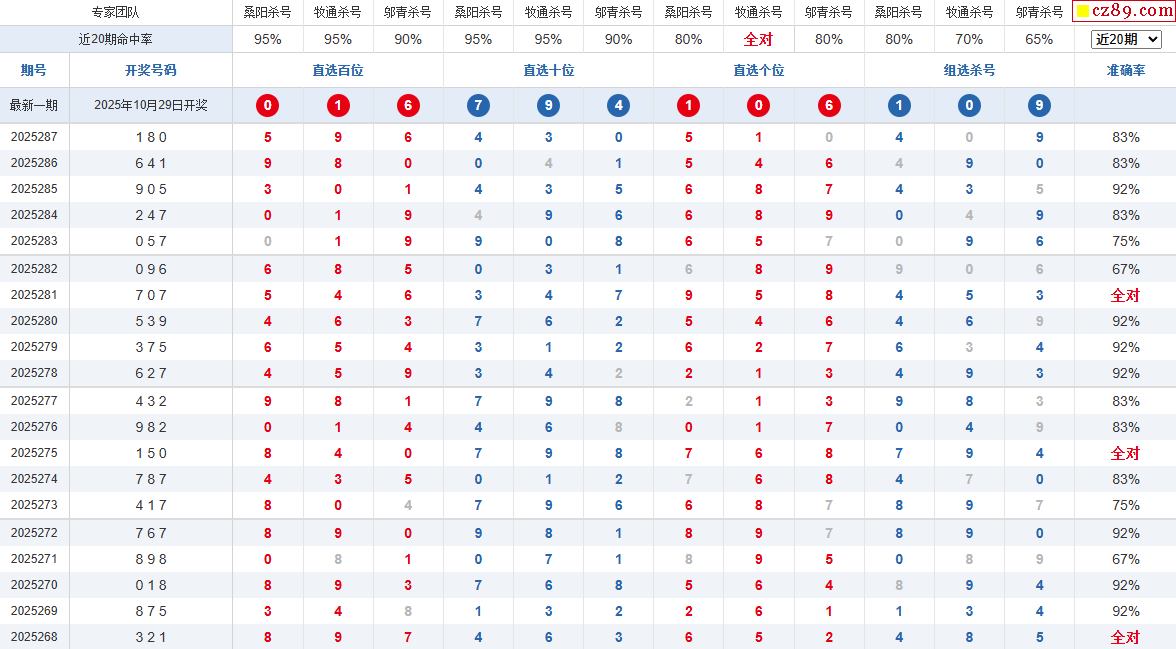 25年288期彩宝贝专家体彩P3杀号定码图表