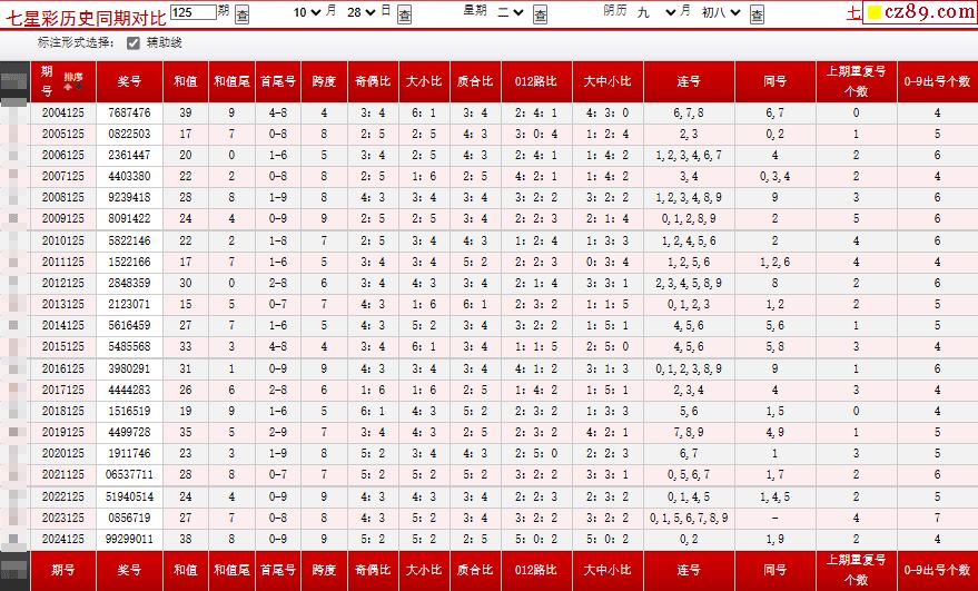 125期七星彩历史同期对比图
